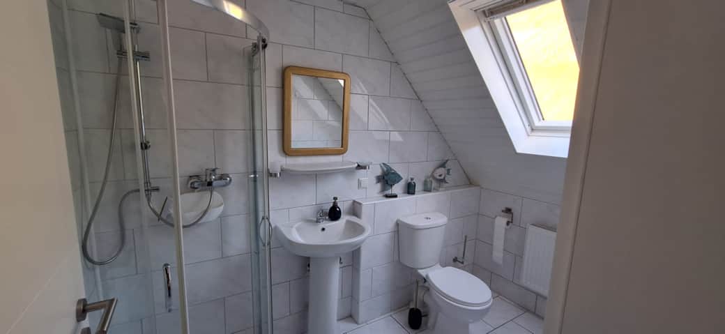 Jedes der 2 Schlafzimmer verfügt über ein eigenes, separates Bad mit Duschkabine und einem eigenen Flachbildfernseher.